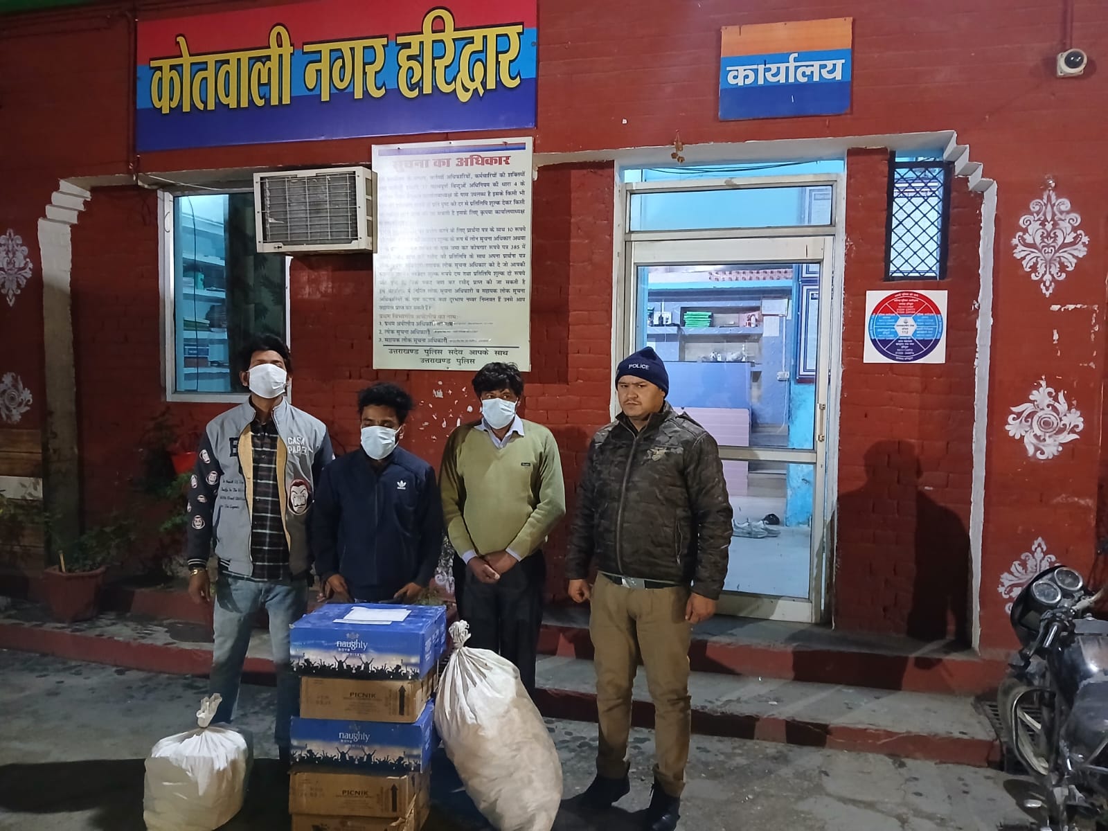 शराब के धंधे में संलिप्त 03 आरोपी आये पुलिस की गिरफ्त में वरिष्ठ पुलिस अधीक्षक जनपद हरिद्वार द्वारा आगामी नगर निकाय चुनाव 2025 के दृष्टिगत मादक पदार्थ (अवैध शराब/स्मैक/चरस/गांजा/आदि) तस्करों के विरुद्ध चलाये जा रहे अभियान के दौरान कोतवाली नगर पुलिस द्वारा शराब के धंधे में संलिप्त 03 आरोपियों को मय अवैध देशी व अंग्रेजी शराब के साथ थाना क्षेत्र मे अलग -अलग स्थान से पकड़ा गया।