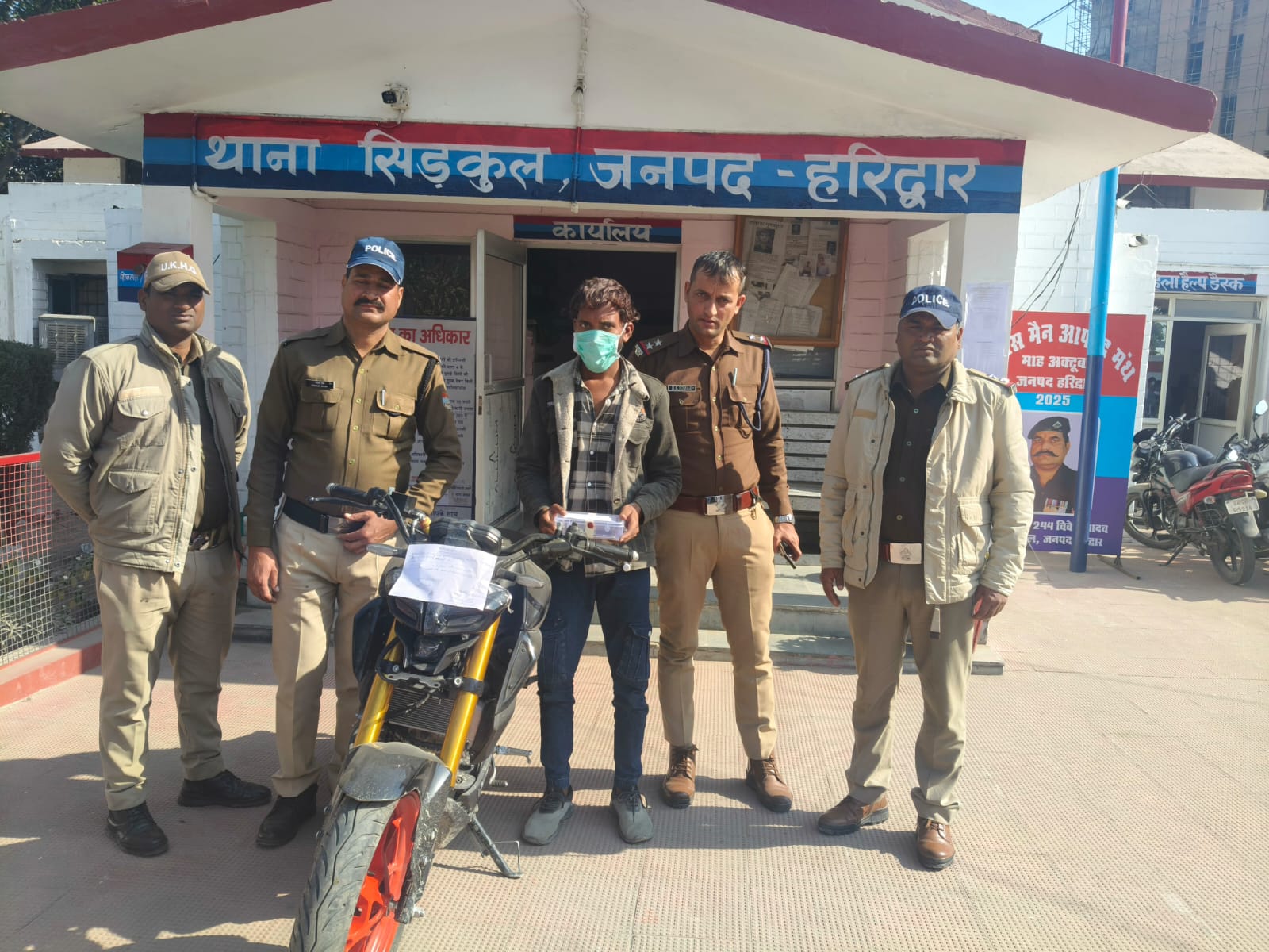 सिडकुल पुलिस को गश्त के दौरान दवा चौक के पास बरगद के पेड़ के निकट अंधेरे में दो व्यक्ति मोटरसाइकिल पर बैठे दिखाई दिए।