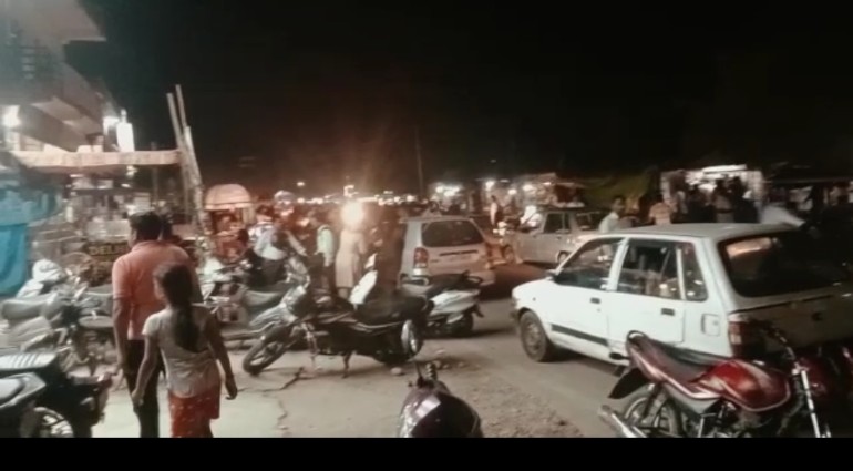 नवोदय नगर गोल चौक पर पीठ बाजार में उमड़ी भीड़ के कारण फिर जाम की भयानक स्थिति में फंसे लोगों को करना पड़ता है समस्या का सामना