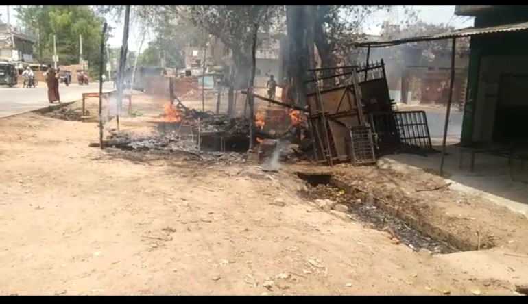 कालका चौराहा में गैस सिलेंडर फटने से सब्जी की दुकान पर लगी भीषण आग,भीषण आग की चिंगारी से, बगल मे ही कपड़े की दुकान भी जलकर खाक